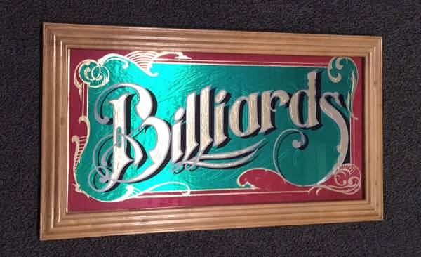 Framed Glass Sign - Billiards Dimensions: Height 15 inches Width 27.25 inches Game Room Pool Table