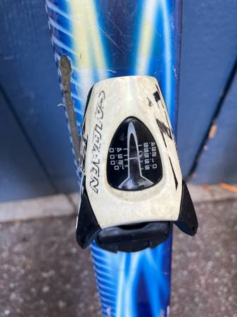 Dynastar Kids ski 104 cm Solomon bindings perfect for the jump to intermediate. My boy skied these for a couple seasons but he grew. time to pass them on. Could defitnately use a quick tuneup