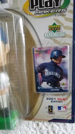 Future Hall of Famer Seattle Mariners Ichiro Suzuki bobblehead with collectible baseball card. Official Upper Deck 2001 Edition with hologram seal. Unopened in box. $50.
