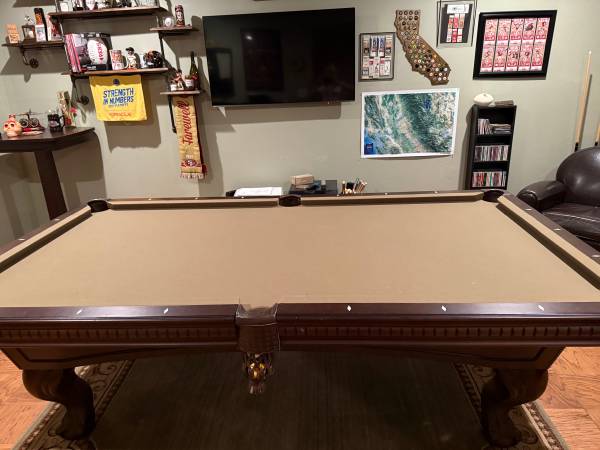 We’re selling our beautiful 8-foot pool table — it’s been well cared for and still looks fantastic.