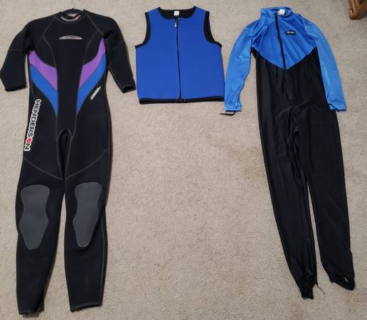 2.) 2-Piece 7mm (1/4") Wetsuit/Dive Suit - Henderson Aquatics, Men's Size XXXL, BUT Henderson suits run small, so this would fit an XL. Nice condition.