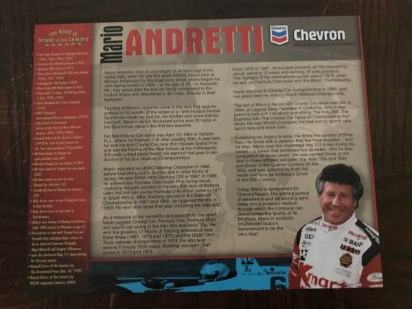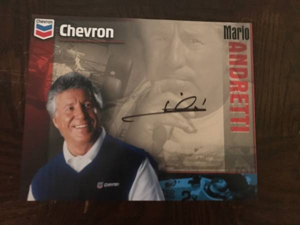 Mario Andretti Autographed Chevron Picture that I got at the Long Beach Grand Prix several years ago $50.00 firm