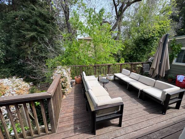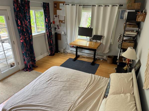 Craftsman style 2 bedroom with second room that has separate entrance off deck with en-suite bathroom. We are flexible to other dates. Has EV charging. Bedrooms are furnished with a king bed and en-suite bathroom. The other bedroom is separate (out on the deck) with queen bed and bath/shower. Washer dryer are in second bedroom.