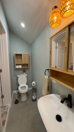 Brand-new bathroom including a new shower, ideal for fitness, wellness, grooming, or long operating days.