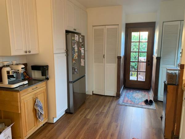 Separate dining room looks out onto the large bougainvillea, and the living room windows are filled with sun & a large tree. The front door opens into a mud room that provides space for shoes & coats and separation from the living room. The space feels green, peaceful and quiet.