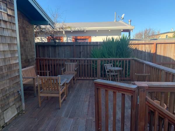 Good for 1-2 people and set up for comfortable working from home. Take advantage of the deck to take calls in the sunshine or stretch out with coffee. Generally quiet neighborhood and loving neighbors. Please contact with a few details about yourself and desired length of stay to apply. Thank you!