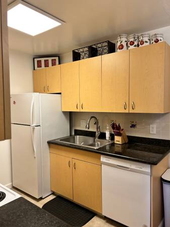 The condo is fully furnished, including kitchen essential such plates, utensils, pot, and pans.