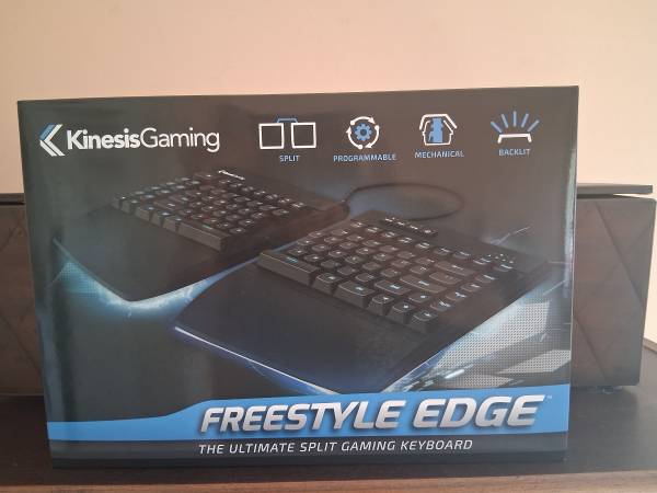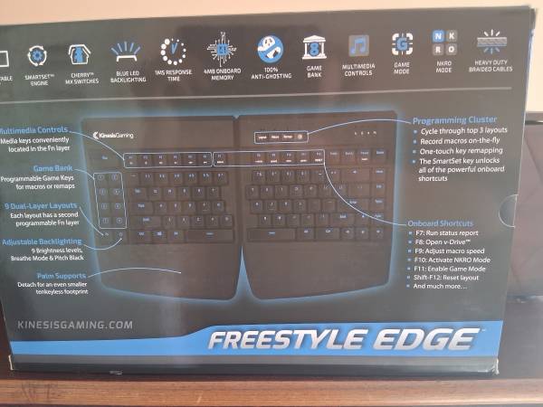 New Kinesis Gaming Freestyle Edge keyboard blue, in box, unused. Model #KB950-BLU. Split layout, programmable, mechanical (cherry mx switches), adjustable blue backlit, etc.