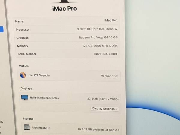 Apple iMac Pro 2017, 27-inch Retina Display, ( same as Apple studio display 5k Retina )