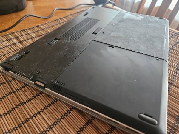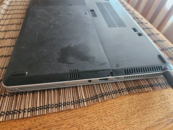 The battery that I am throwing in to the deal is a used spare from my other 9470m machine; it seems to run the machine for about 2 hours on full charge. Sometimes the battery will not recharge without some coercion (shutting the machine down completely and rebooting from just the battery, THEN reinserting the AC adapter, seems to get it to start charging when it's being obstinate). This is a function of the BATTERY, not the computer (my other battery recharges in this machine just fine). Cosmetically, the battery's plastic cover has a corner missing (see photo) - this is definitely nothing more than cosmetic.