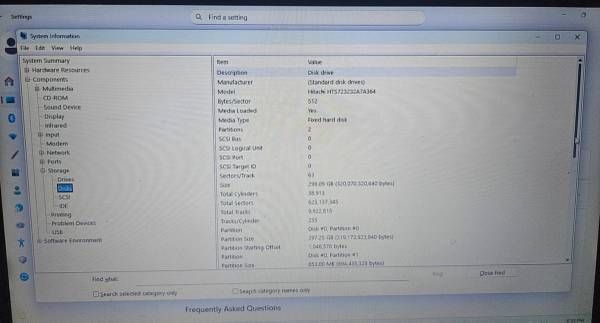 Hitachi nominal "320GB" SATA hard drive (i.e., 320 billion bytes = 298 computer GB)