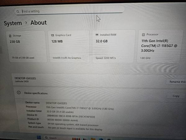 Selling very gently used, powerful, fast and light Dell Latitude 5420 business class ultrabook laptop with 14” full HD IPS anti-glare display, 11th Generation Intel® quad core i7 CPU, 32GB RAM, 256GB M.2 NVMe Solid State Drive (OPTIONAL upgrade to 512GB NVMe SSD for additional $20 or 1TB NVMe SSD for additional $40), Intel® Iris® Xe Graphics, activated and updated Windows 11 Pro OS, integrated webcam, Bluetooth, backlit keyboard, and OEM Dell 65W AC power supply. Ultrabook is in excellent (like new) cosmetic and functional condition throughout (see pics): pristine screen; battery condition shows excellent in BIOS and charges to 100% for many hours of runtime after full charge; hinges and latches are all tight; all functions work perfectly. Also installed is activated Microsoft Office Professional 2021 Suite – 64 Bit (Word, Excel, Outlook, PowerPoint, Access, Project, Visio etc,), and no renewal or subscription needed in the future.