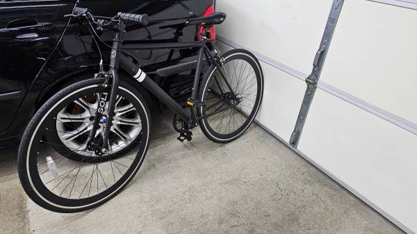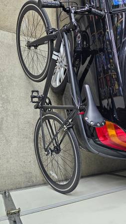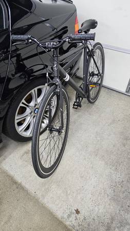 Black and white fixie bicycle. 52cm Has less than 15 miles ridden. Excellent condition. Spent most of its time sitting in my garage.