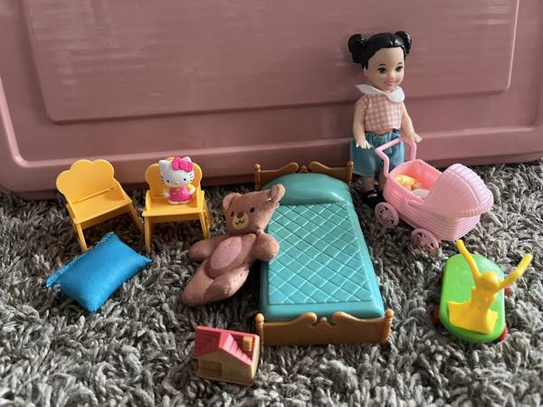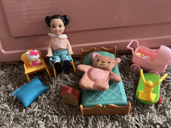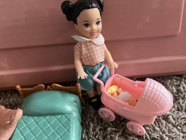 Cute Barbie little sister Kelly doll with lots of accessories. See photos. Gently played with in nice condition.