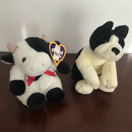 RUSS BERRIE FRAZIER VTG Puppy Dog Black White 10" Moo Cow with sound