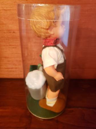 Brand new, 1964 Hummel by Goebel German costumed "for father", in original plastic container and cardboard outer box, measures 11 inches tall, complete with all accessories including: complete outfit/clothes, hat, beer stein, 2 radishes and a turnip, never out of box, first photo from internet so not to remove this one from the box, pick up in Danville, no shipping, cash only.