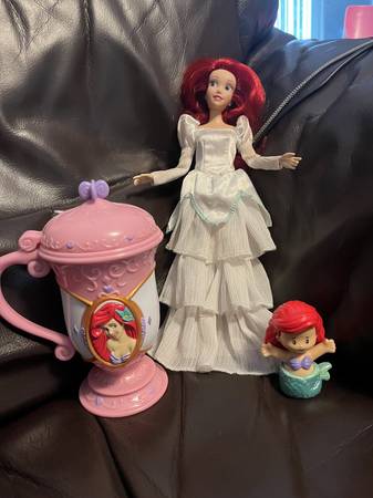 Beautiful Ariel Barbie type doll, mini figurine and cute plastic teapot. See photos. Pick up in San Leandro.