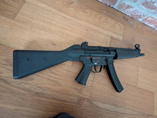 CYMA MP5 Package. This is the electric blowback version, which can be disabled if desired. The furniture is polymer, so no creaky abs plastic.
