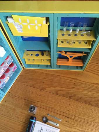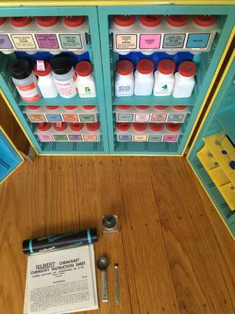 Vintage Toy Gilbert Chemcraft Portable Action Science Lab Set With Metal Box Excellent Condition. Approximate Dimensions: Height: 16 inches Width: 14.5 inches Depth: 6.5 inches