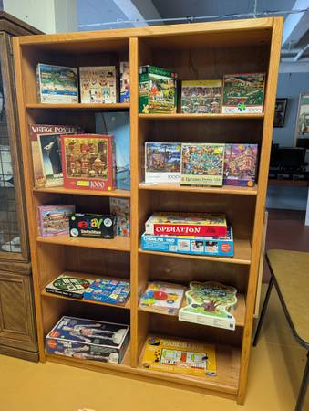Most puzzles are $2 to $5 Boardwalk $10 Chemlab / 1100 $3 Oh Rats $3 Parcheesi $5 Pirates of the Caribbean Life game $15 Rack-O $15 Visible Man $10 Saturday 11 am to 4 pm Sunday 1 pm to 4 pm Some...