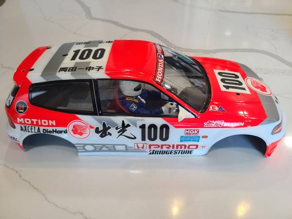 Selling a rare hard to find vintage Tamiya Idemitsu Motion Mugen Civic body. It was only used once in Stock Tamiya FF01 race in 1997. It has been in my shelf since. Body has minor scuffs from 2 heat races and 1 final race. Body with come with everything seen in pictures. Email me back if interested.
