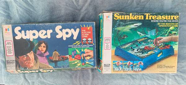 Vintage Used Super Spy & Sunken Treasure Games. Good used condition, boxes are worn, they look complete. I have not tested them though, that’s why I’m selling as-is for parts, 10.00 for both, pair only. Located in South Hayward. Cash only. If the ad is still up they are available.