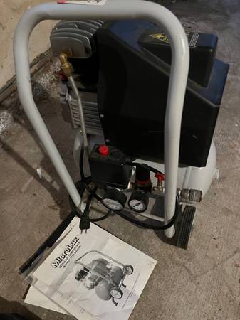 First, is a gray Microlux 2HP 2.5 gallon Air Compressor for $60.