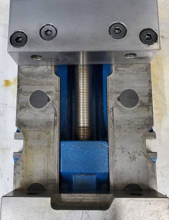 The Kurt machine DX6 crossover vise features a 6-inch jaw width, a 9.08-inch jaw opening, and a 7342-lb maximum clamping force. Key specifications include a 2.875-inch bed height, 1.735-inch jaw height, and an overall length of 16.81 inches. It is a single-station, stationary vise designed for precision milling applications