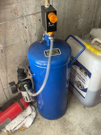 Harbor freight media cabinet with tank. Benchtop Abrasive Blast Cabinet. 30 lbs capacity. Gloves in good condition. I've added a light inside the cabinet. Sandblasting Vintage cars.