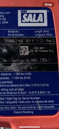 Used DBI-SALA Nano-Lok Edge 8 ft twin-leg, cable SRL with steel rebar lock hooks. One pice. Belt not included. If interested please call Don’t text or email. Will not respond to emails or text...