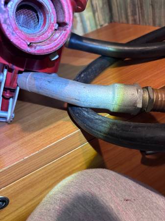 This is a nice, barely used Wards Riverside Piston Hand Pump for transferring fuels or fluids from barrels. Has about 6 feet of hose.