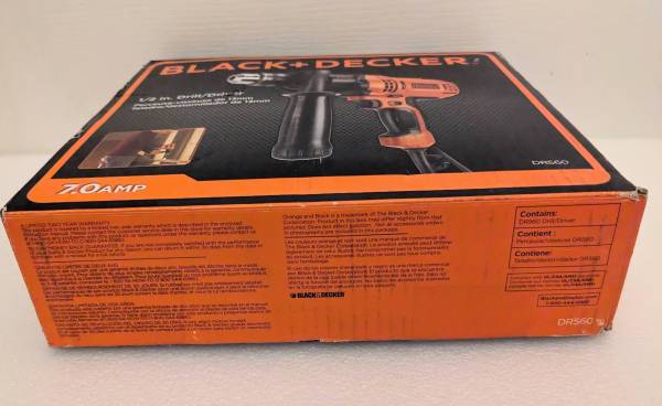 New open box. Model DR560. Specifications Brand Name:Black+Decker Product Type: Corded Drill Driver Amps: 7 ampere Brand Name: Black+Decker Chuck Size: 1/2 inch Chuck Type: Keyed Cord length: 8 foot...