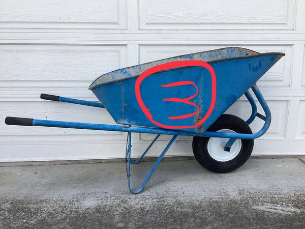 6 cu. Ft. Steel Wheelbarrow $ 75 up,① $ 75,③ $170, The tire is intact and has no leakage.