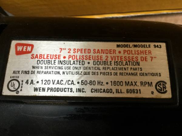 Sander Polisher 1⃣️Black And Decker Sander Polisher Model 9531 7" Diameter 2 Speed 3/4 HP, $ 25, 2⃣️WEN 7" 2 SPEED SANDER POLISHER MODEL 943 1600 rpm ,$35.