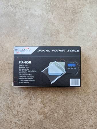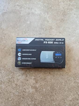 WeighMax Digital Pocket Scale W-PX650 Capacity 650g Sensitivity 0.1g Auto Shut off Brand New Portable Features :Brand New Capacity: 650g Sensitivity: 0.1g Measuring units: g, oz, ozt, ct Stainless...