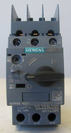 Up for sale we have a Siemens Sirius 3RV2011-1CA10 Circuit Breaker in good working condition. It is a Siemens Sirius model 3RV2011-1CA10. It is rated at 1.8 to 2.5 amps, 3 pole, 600 VAC. WT 1 lbs...