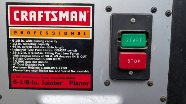 Classic, free-standing Craftsman planer jointer in excellent condition. Has 4" dust port, 3 rotating blades (recently sharpened) and 46" cast iron table capacity. This is not a benchtop model. Preparing to move. Price firm. You must haul; I cannot deliver.