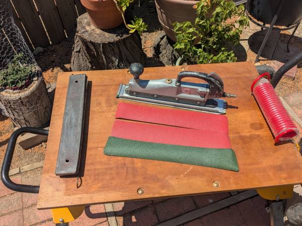 Campbell Hausfeld Dual Piston Straight Line Sander model TL 1016 Works great. Comes with extra pad anda few sheets of sandpaper. Pneumatic air compressor tool auto body automotive detail paint work