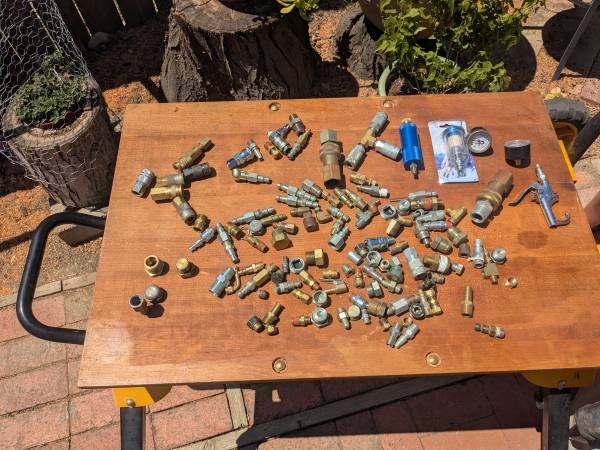 Various couplers, fittings, plugs, connectors, filters, quick connects, etc. for pneumatic tools and systems. Different sizes. Some industrial, automotive, and standard. I also have 3 air hoses of...