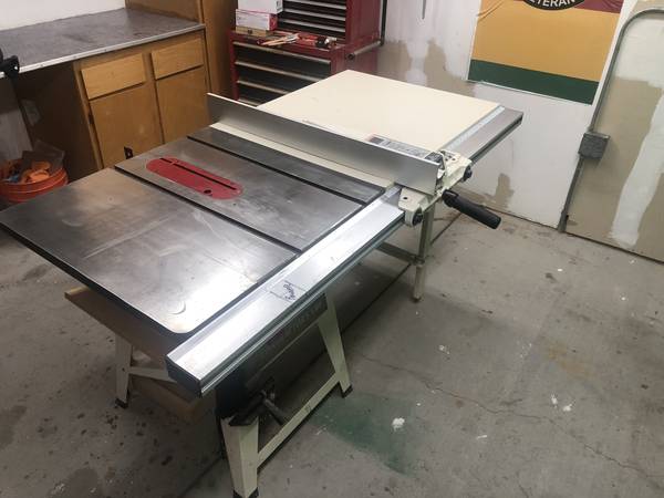 For sale is a vintage (circa 2000) Delta contractor table saw in good condition. Made in USA when Delta made great power tools. Uses a 10" blade, has a Delta Unifence, a 32" table extension, and is currently wired for 110-120 volts. Can be rewired for 220-240 volts. I bought it brand new and it has always been kept inside. It's a great saw and I hope it goes to a good home. Reason for selling is after 25 years, I upgraded to a Delta Unisaw with 52"fence. Comes complete with Unifence and sawblade safety cover.