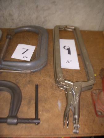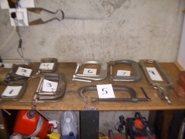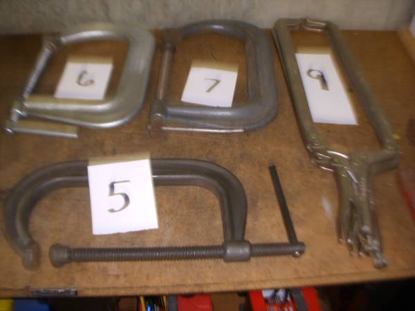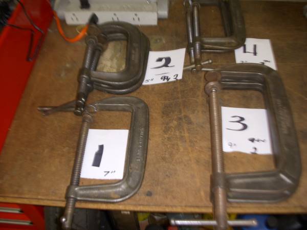C-CLAMPS---VARIEIY OF SIZES,SHAPES AND USES.........................................CLAMPS ARE NUMBERED AND QTY. NO 1..... BRINKS & COTTON NO 145-6 DUCTILE 7"......................................