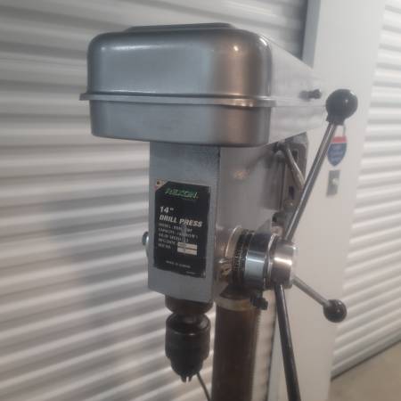Rexon 14" stand up drill press. Made to last cast iron base and player. Made in Taiwan. Not cheap Chinese.