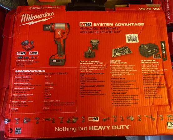 1) 1/2" to 2" Exact™ Punches and Dies (1) M18 FORCE LOGIC High Capacity Knockout Kit (2676-20) (1) 3/4" Draw Stud (2) M18 REDLITHIUM XC Extended Capacity Battery (48-11-1828) (1) M18 & M12...