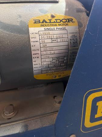 Model 300 Serial # 1359 3/4 HP 9.6/4.8 Amps 1 Phase 115/230 Volts 3450 RPM 60 Hz with bits