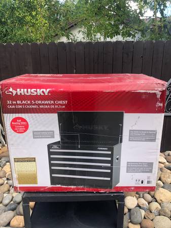 Brand New Huskey 32" Black 5 Drawer Tool Chest/Box. Never used, Drawers fully extend and have ball bearings. $200 Cash Only. Located in Vacaville Call r Text 707 30 1059