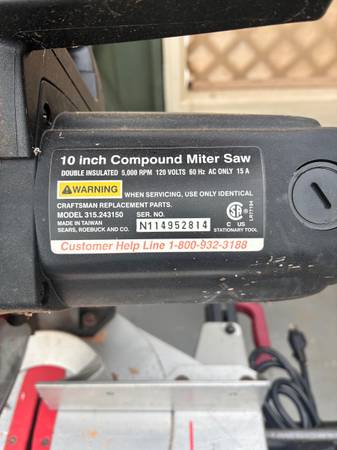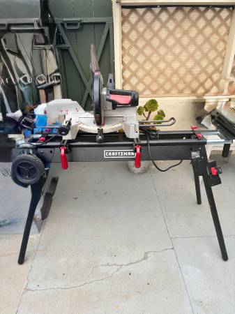 Craftsman 10” compound miter saw with stand . Great condition. First to pick up or holds with Venmo deposit $25.