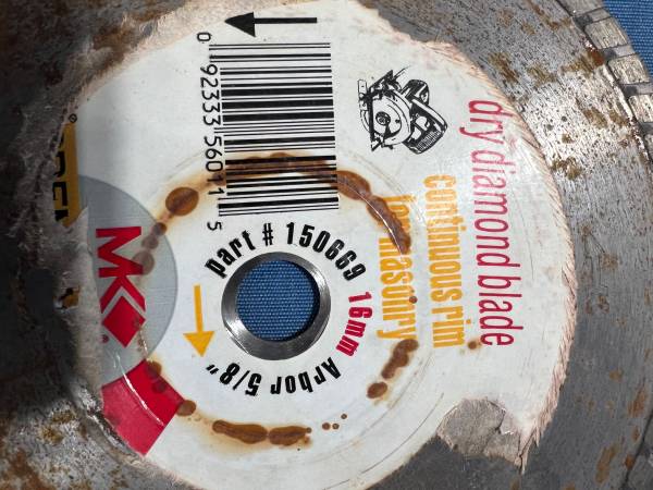 MK Dry Diamond Masonry Blade – 5/8" Arbor – Used – $15 Located in Concord, CA