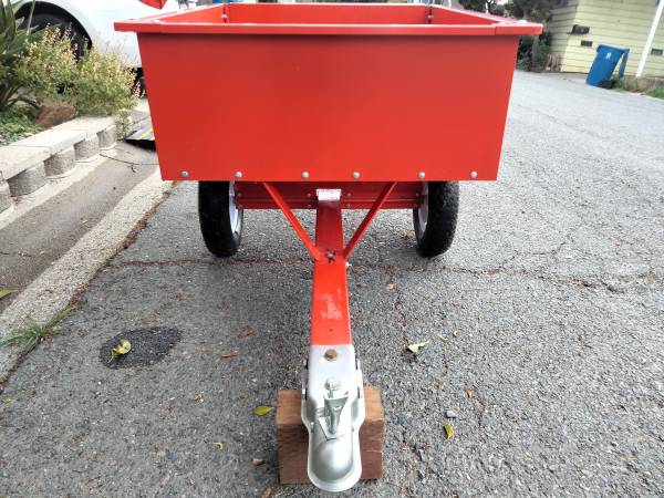 Trailer is 40 inches long 32 inches wide and 12 inches deep the wheels measure 14 inches it has a 2 inch receiver only used twice asking 100 dollars