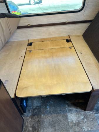 - Removed the old 50lbs dinette table and fabricated a new easy and functional table conversion. Table/bed $120