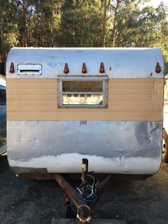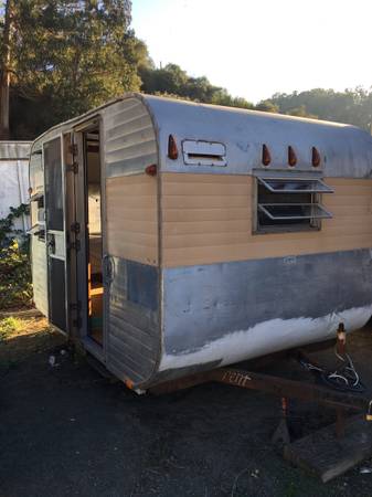 Welcome to the Mermaid Palace, a classic "canned ham" travel trailer with cute Steampunk details.